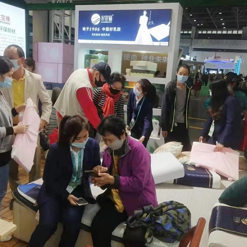 冬交會(huì)期間,好舒福乳膠制品公司共攜10余種乳膠產(chǎn)品到現(xiàn)場(chǎng)參展,不少參展嘉賓紛紛走進(jìn)“好舒?!闭刮唬H身感受天然乳膠寢具帶來(lái)的舒適睡眠體驗(yàn)?!按舜螀⒄勾矇|在全國(guó)統(tǒng)一價(jià)的基礎(chǔ)上打7折,其余小件低至5折?!焙D舷鹉z展區(qū)“好舒?!闭刮回?fù)責(zé)人趙鶴楠介紹。
