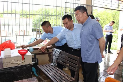 姜宏濤(右一)在收膠站實(shí)地調(diào)研。