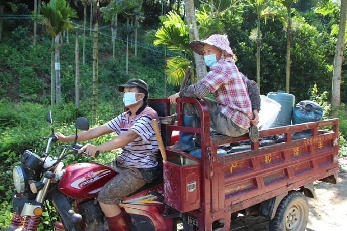 保國(guó)分公司保國(guó)派駐組十三隊(duì)膠工收膠回來。余德現(xiàn) 攝