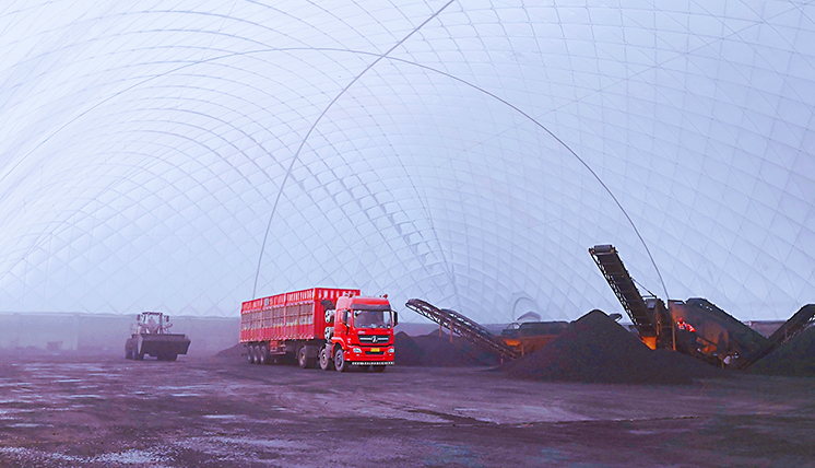 充氣膜煤棚的內(nèi)部空間大,即使局部有可燃?xì)怏w產(chǎn)生,其濃度難以達(dá)到可燃可爆的條件,進(jìn)一步加強(qiáng)了煤炭生產(chǎn)的安全性。
