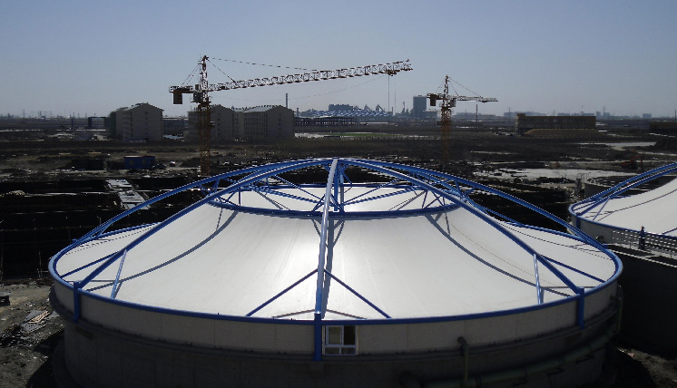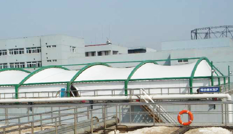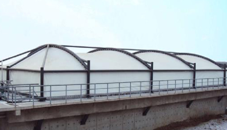 常見的污水池加蓋方式分為三種:陽光板加蓋、玻璃鋼加蓋和反吊膜結(jié)構(gòu)加蓋。其中反吊膜結(jié)構(gòu)加蓋目前為普遍采納的加蓋方式。