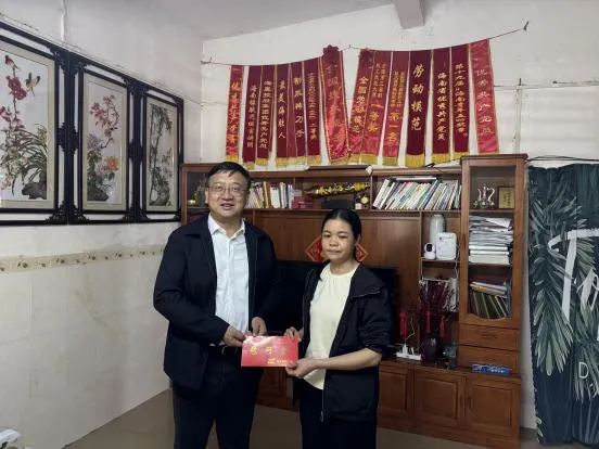 海南橡膠黨委副書記、總經(jīng)理?xiàng)钣钜恍懈凹逾O分公司,走訪慰問(wèn)了全國(guó)勞模、海南橡膠赴非專家虞海濃的家屬。