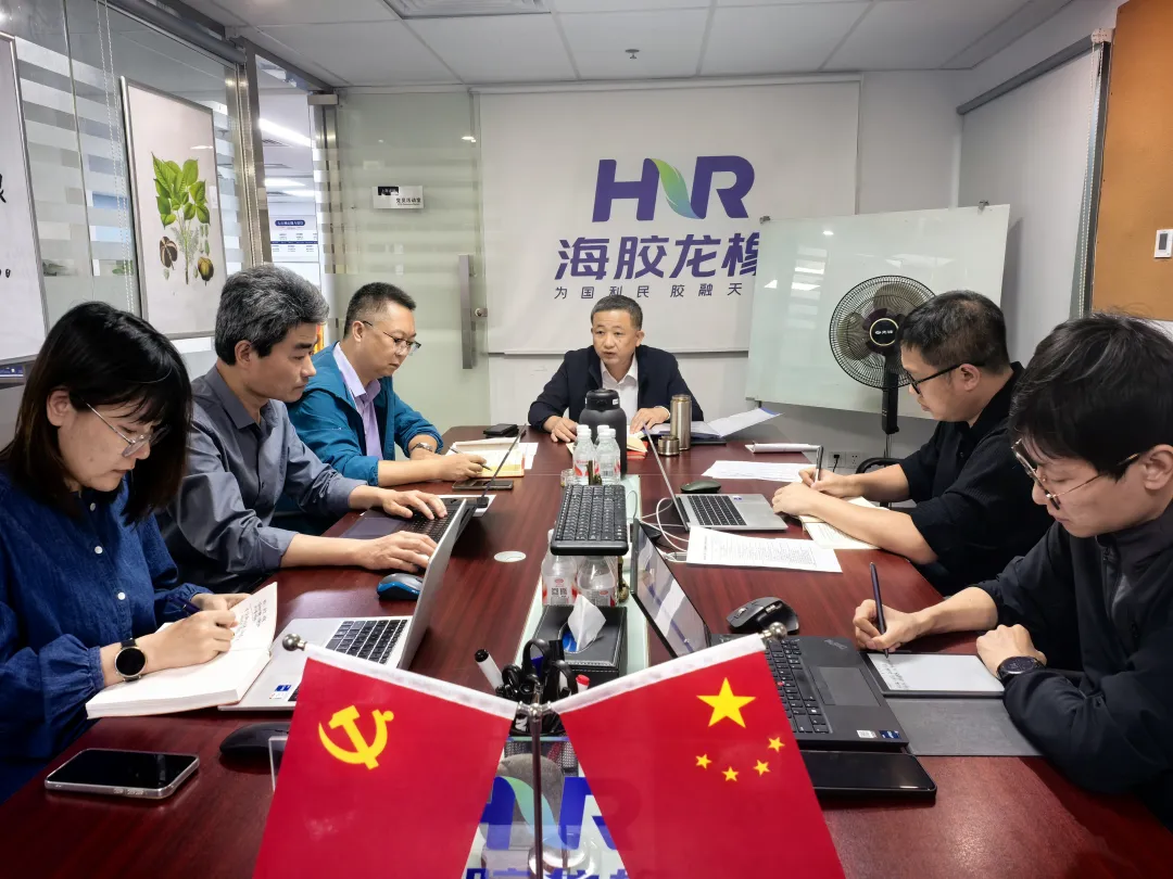 5月9日,海南橡膠黨委書記、董事長王宏向到合盛天然橡膠(上海)有限公司(下稱合盛上海)和江蘇愛德福乳膠制品有限公司(下稱江蘇愛德福)調研。